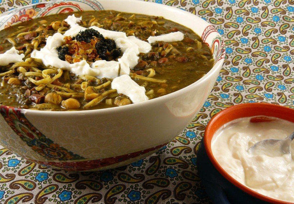 Ash Reshteh is a thick vegetable and noodle soup which is traditionally prepared to welcome the Persian New Year and noodles are believed to bring good fortune for the following year. There are many different kinds of Ash in Iran but Ash Reshteh is the most famous and popular one among all. It is mostly served with whey and sometimes with vinegar.